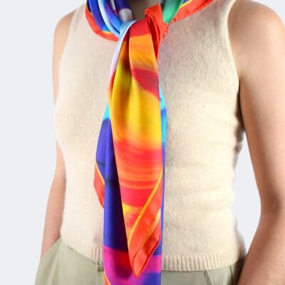 Deep Blue Matrix painting inspires the Sitges Collection. The Blue-Green Sitges60 Mediterranean Sea-Inspired scarves capture the sea colors of my new home, Sitges, Barcelona. Meticulously crafted with impeccable printing and hand-sewn hems, they embody a unique design.