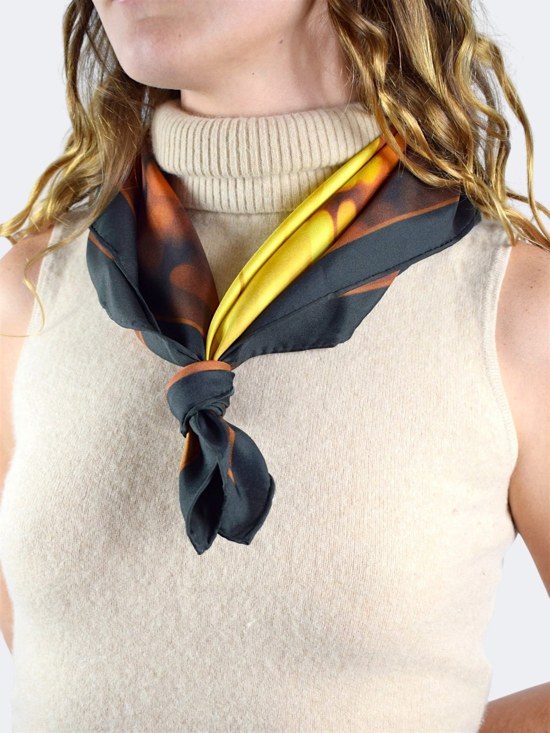 Pañuelo de Seda 70 Ocaso: Este lujoso pañuelo de seda muestra los tonos cálidos de...