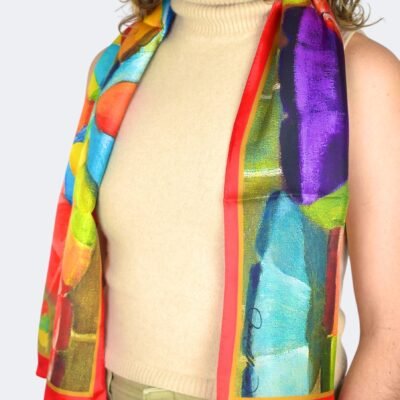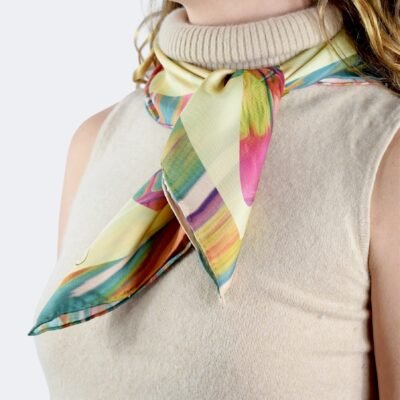 El Pañuelo Delgado de Seda Egeo 140 está inspirado en la pintura Mar de tarde. Egeo 140 es un pañuelo estilizado que muestra suaves pinceladas que intentan capturar el mar por la tarde. Evoca días de verano tranquilos y relajantes junto a la playa. Al llevarlo, es como llevar contigo un pedacito de verano, ya sea en la ciudad o frente al mar.
