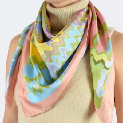 Descubre la ligereza del Pañuelo Delgado Playa, que acaricia suavemente tu piel con un sutil brillo. Inspirado en la cautivadora pintura al óleo Chicas en la orilla, este pañuelo aporta un toque artístico a tu look. Cada pieza es una obra maestra única, cuidadosamente elaborada con dobladillos cosidos a mano e impresión digital hecha con amor. Su textura sedosa y su delicado brillo transmiten una vibra artística y sofisticada en cada aventura junto al mar.