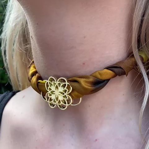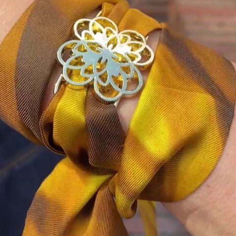 La Hebilla Dorada Anagrama es el complemento perfecto para cualquier pañuelo de Marialbina. Puede usarse con los twillies o como hebilla para sujetar tu pañuelo de una forma elegante y muy chic.