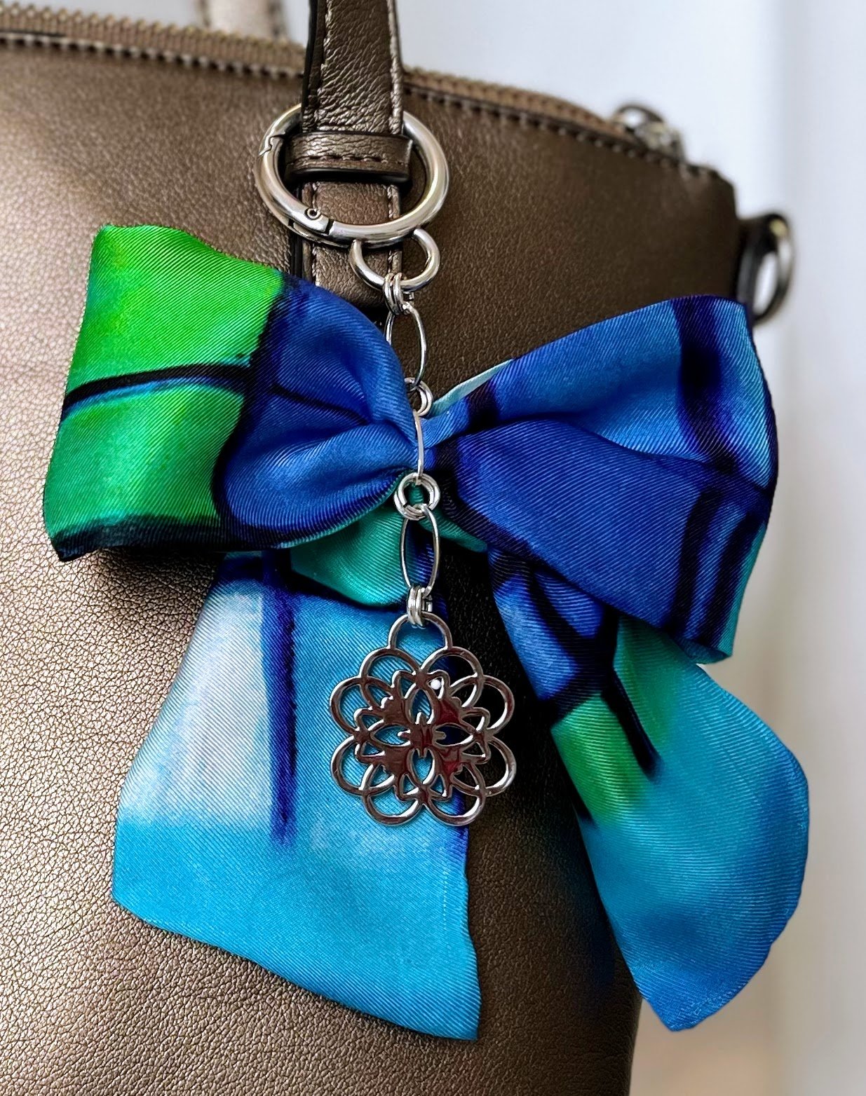 Las imágenes mostradas son referenciales; la longitud real de la cadena puede variar. Personaliza tu conjunto combinando la cadena con el twilly de Marialbina Silk que elijas, creando un juego tan único como tú.