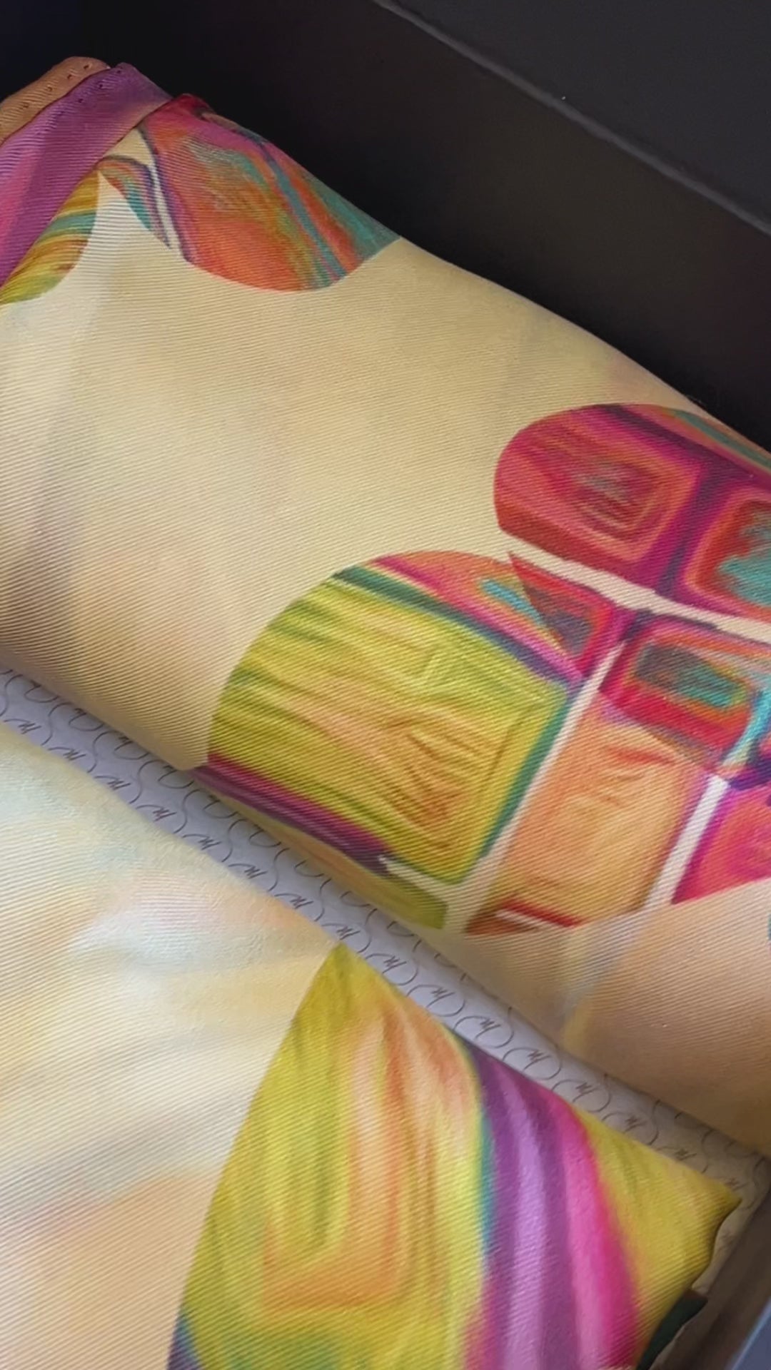 Cada pañuelo es una versión en suave seda de mis pinturas, donde se reflejan emociones y creatividad a través de una elaboración cuidadosa y artesanal.